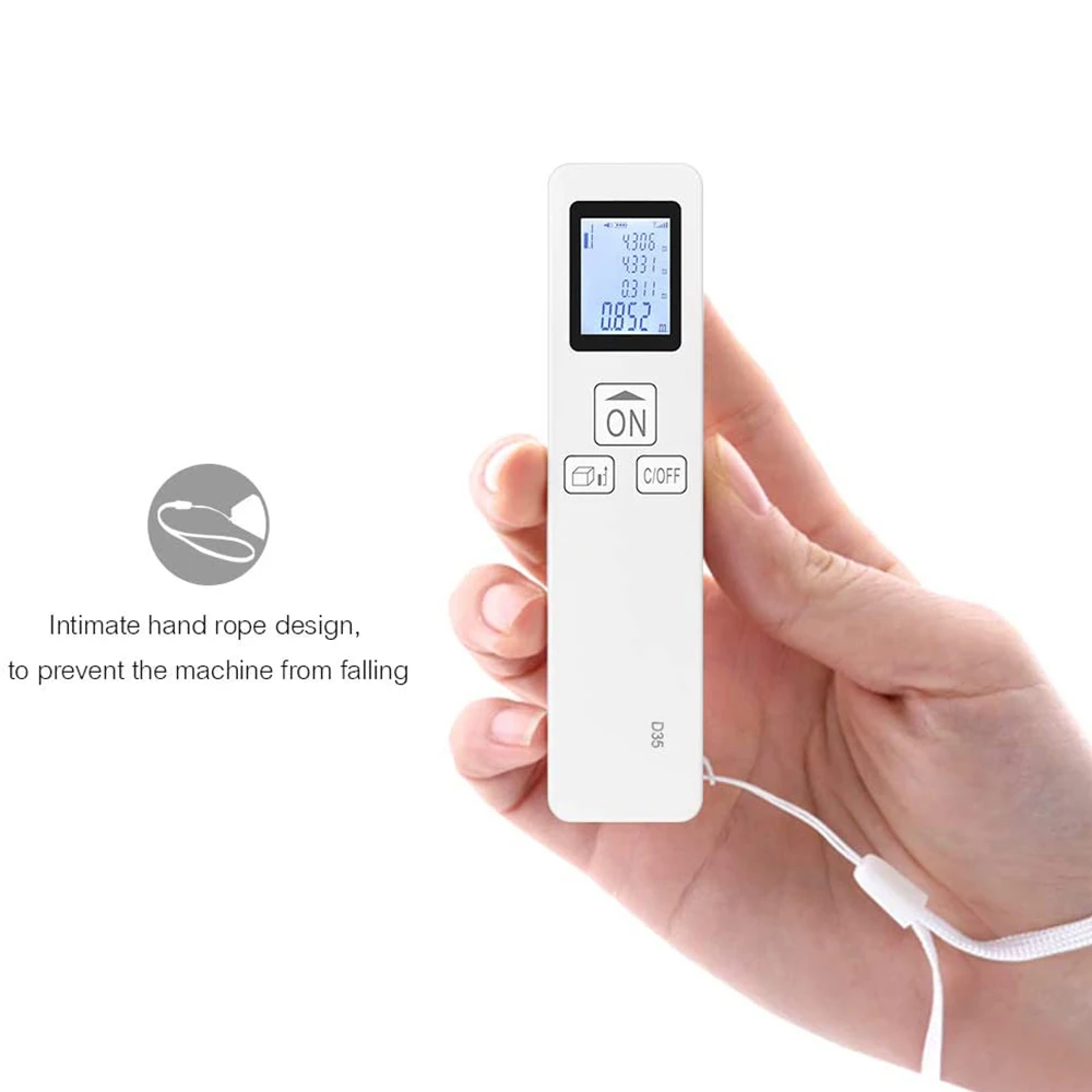 .Pictures of Portable Mini Handheld Laser Distance Meter 35M Digital Laser Rangefinder LCD Distance Area Volume Room Measurement Range Finder